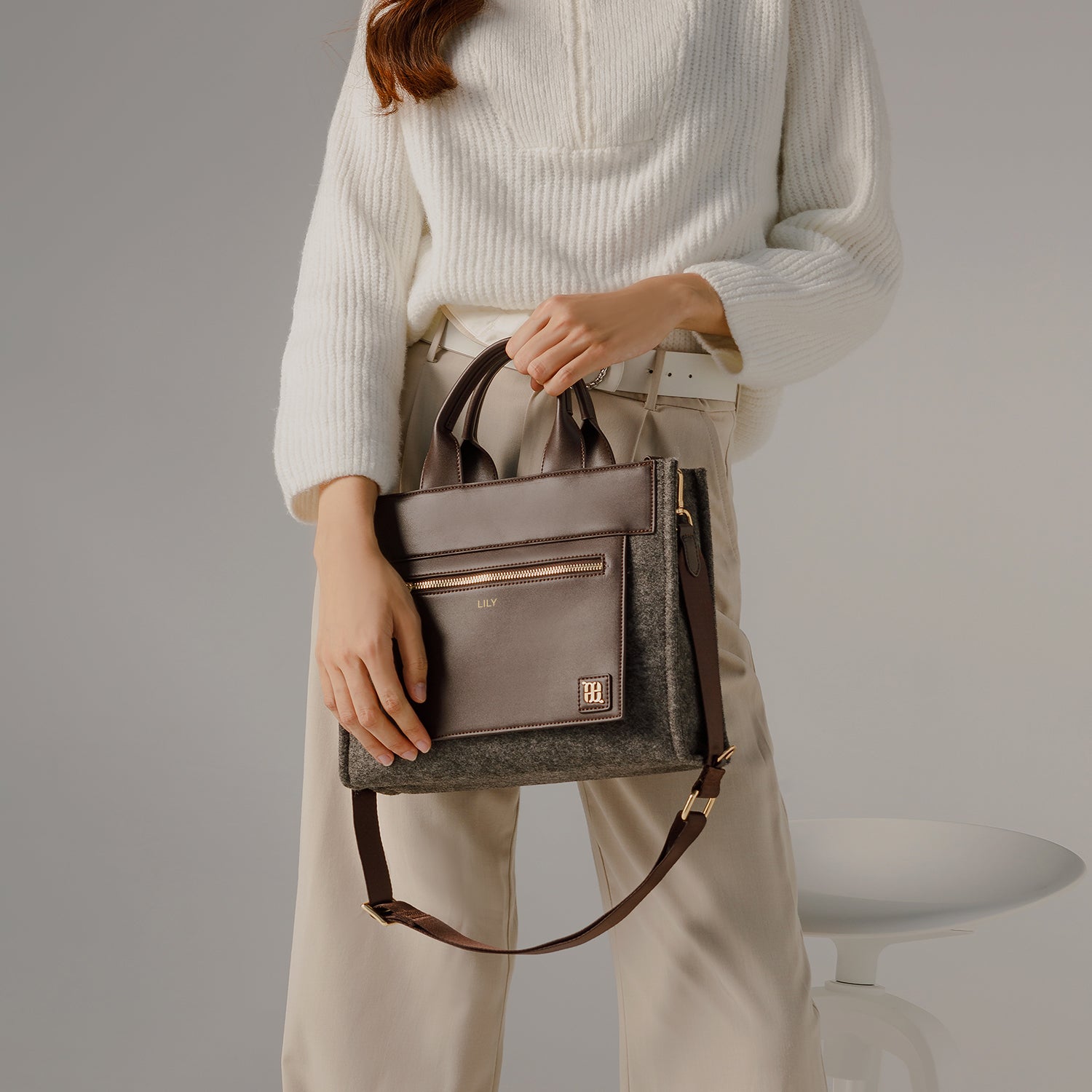 As an exclusive touch of luxe represented by our new step into refreshed subtle statements, our first-ever monogram logo adorns the bag in a minimal yet gracious fashion.