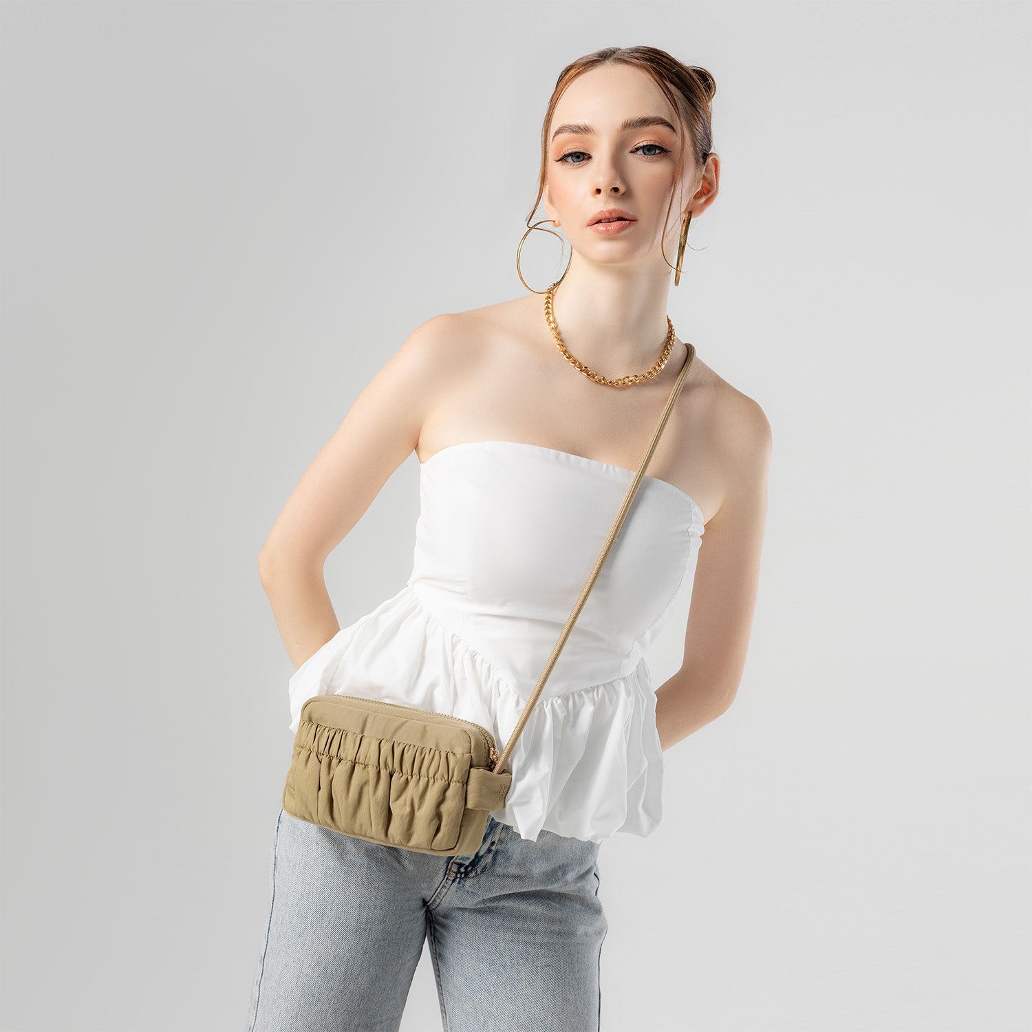 Poofah Crossbody Bag -khaki