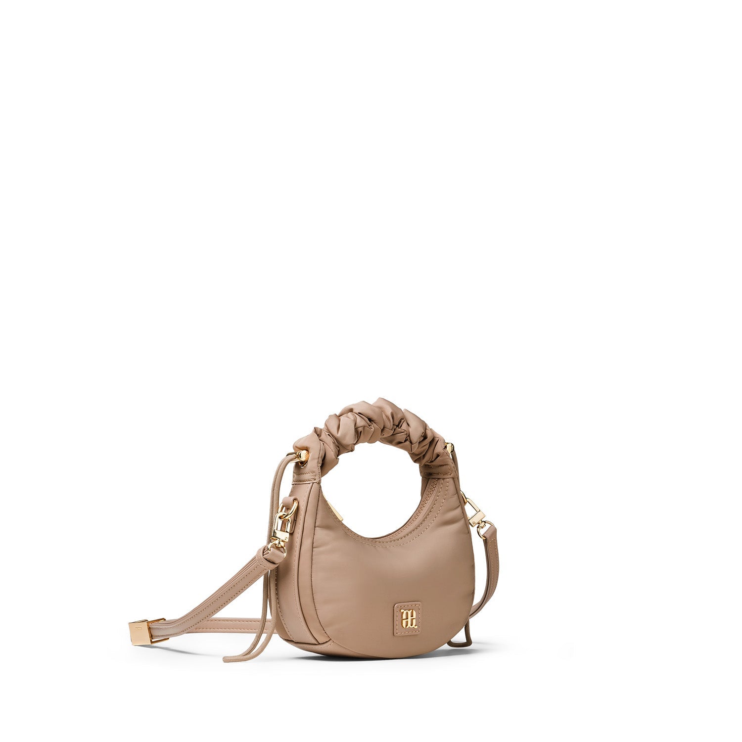 Fashioned from premium padded nylon, the Fuffa Micro Hobo is a petite work of art in a pillow-like silhouette. Its quaint form fits up to an iPhone 15 Pro Max, a cardholder, keys, lipgloss, mini perfume, and your favorite candy.