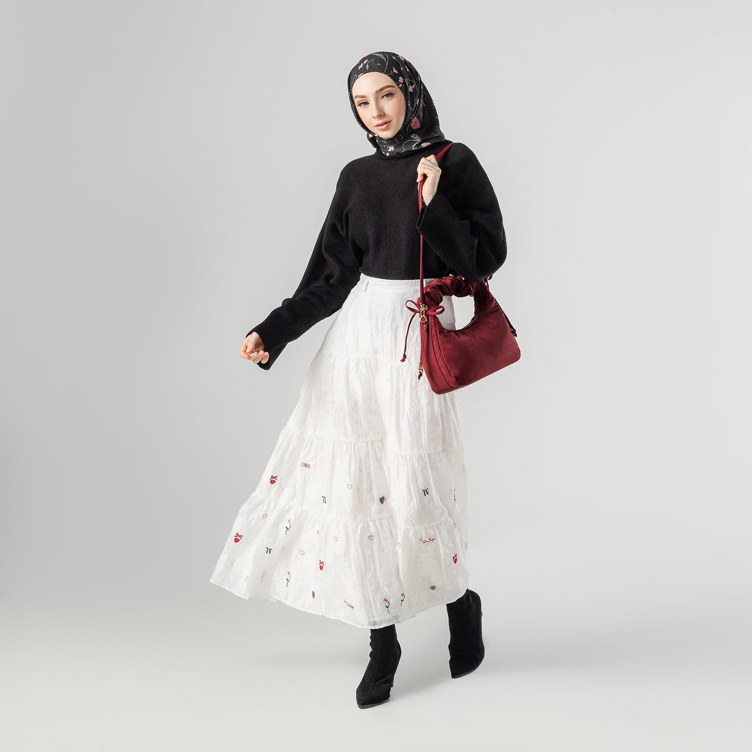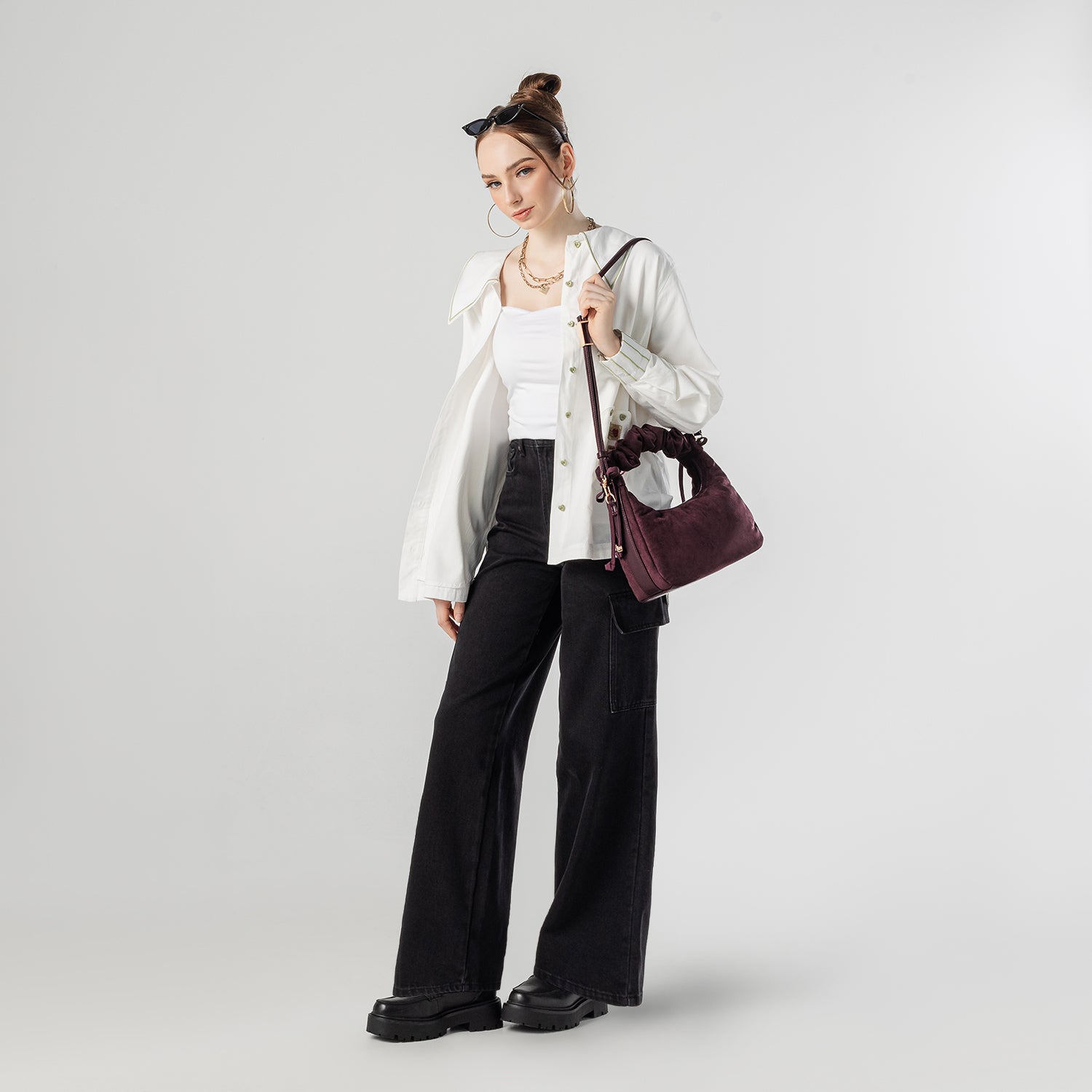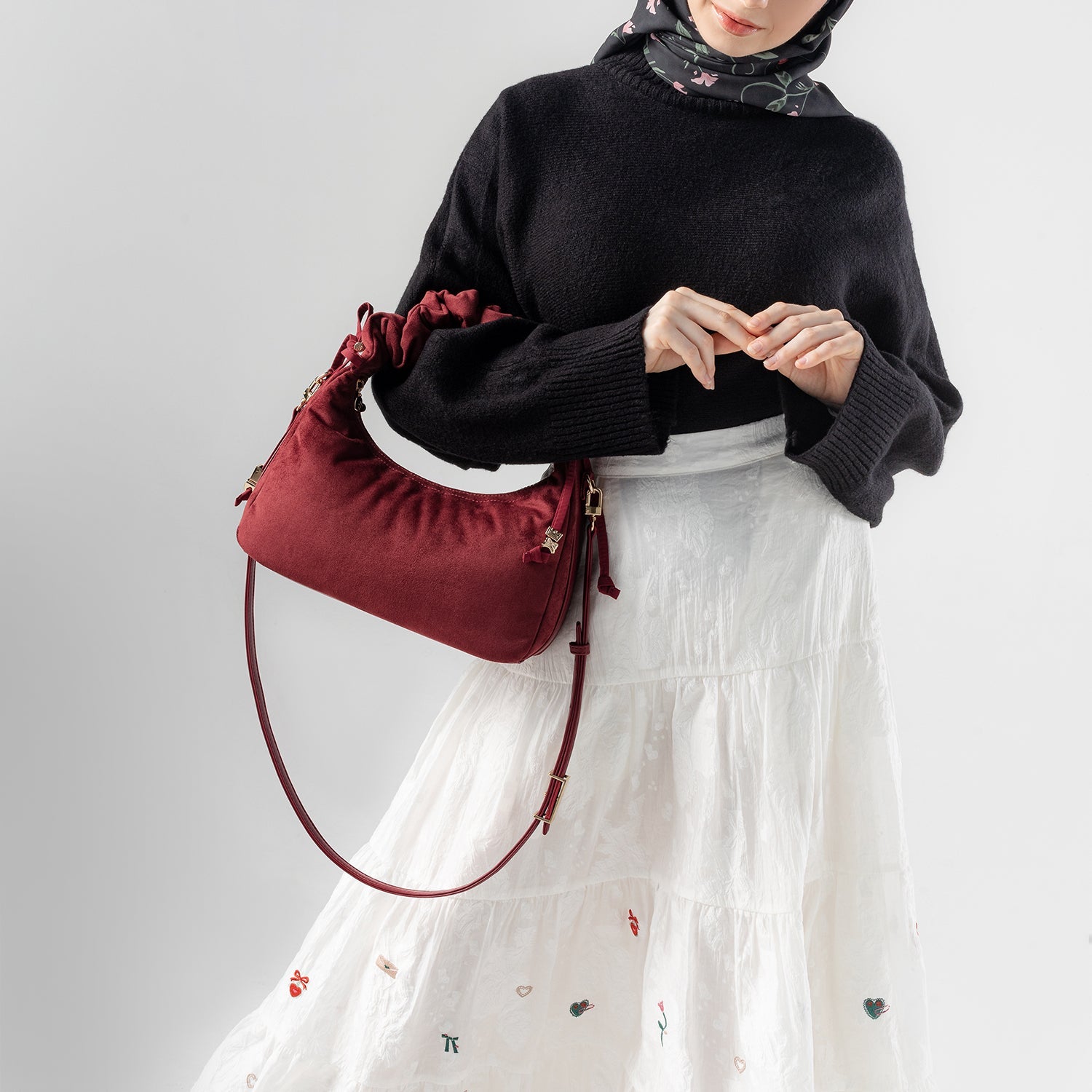 Caffa Hobo Bag Suede -cranberry